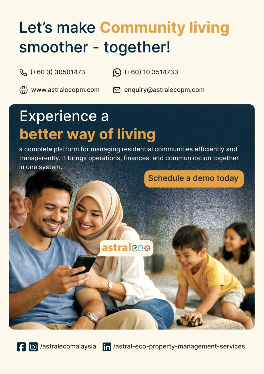 Our proprietary in-house Property Management App enables smarter, faster, and more transparent property management. It is designed to support the Management Office (MO) as well as the Management Corporation (MC), Joint Management Body (JMB), and Resident Association (RA), providing real-time visibility into daily operations, maintenance activities, and issue resolution.